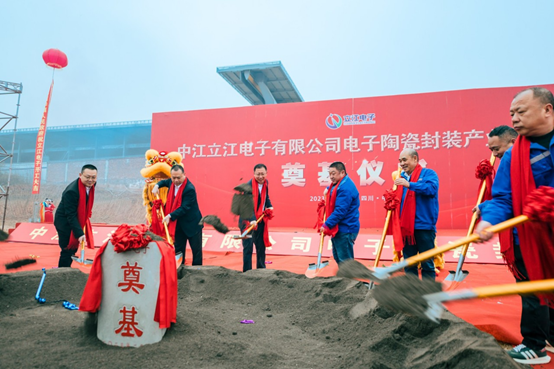 2023年2月6日上午8:30中江立江电子在新厂区用地上举办了电子陶瓷封装产业化项目的奠基仪式。出席本次奠基仪式的有县人大常委会主任、凯州新城管委会主任杨晓刚及县各领导、公司总经理卢晓熊、技术总监邓仕辉、运营总监曾毅及立江电子各部门主管及员工。